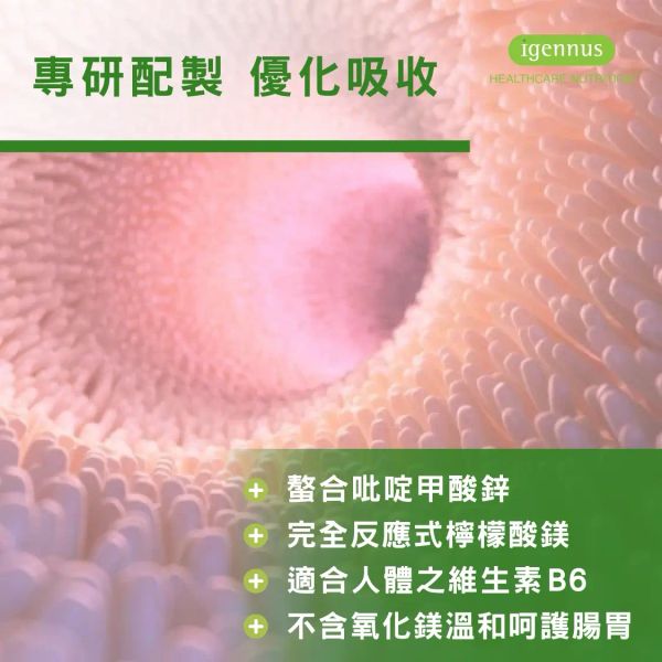 高吸收率形式 • 鋅 + 鎂 + 維生素B6