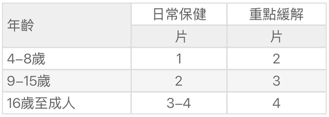 靈活劑量設計 • 4歲兒童至成人皆宜